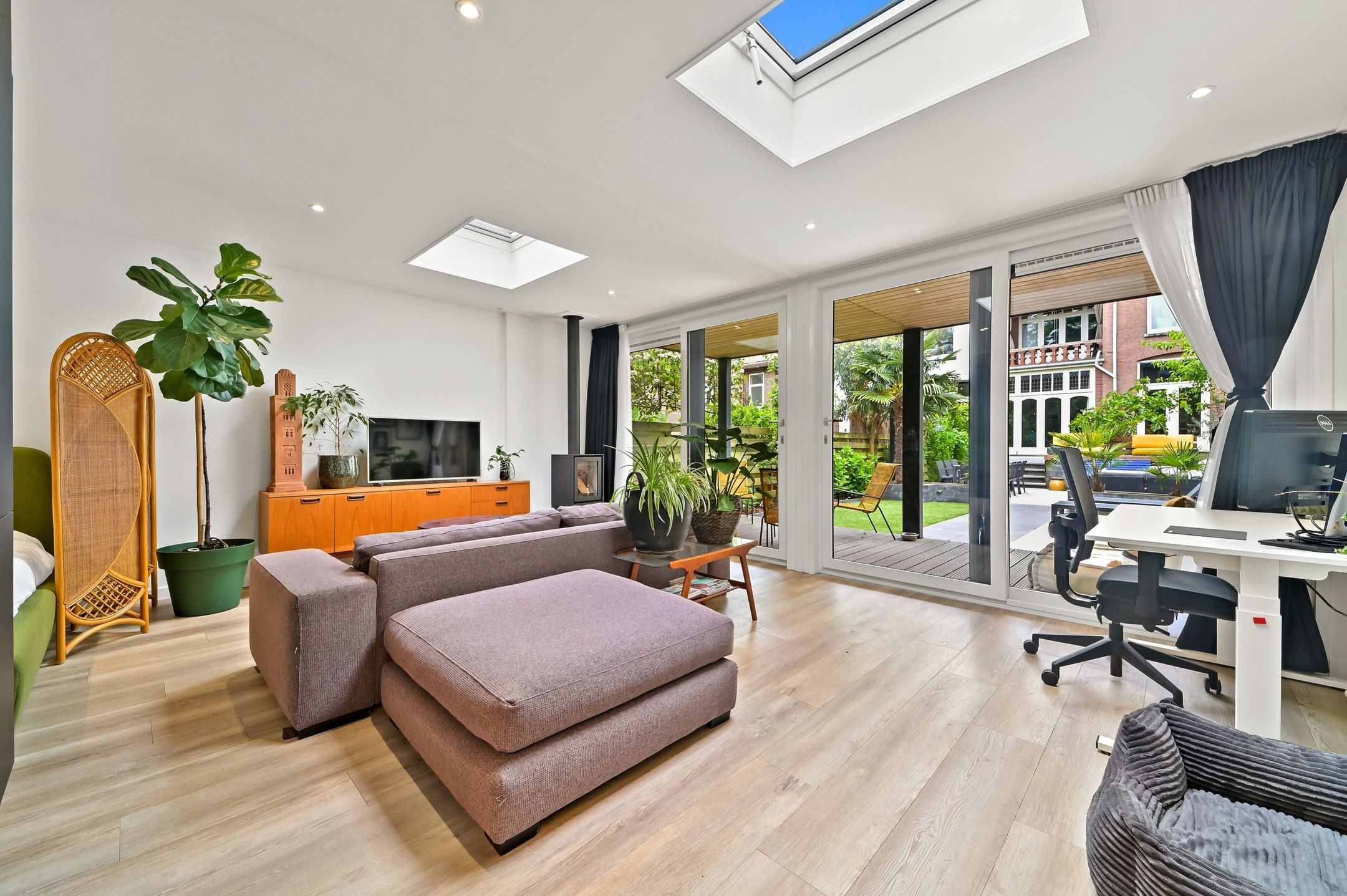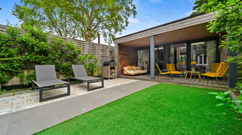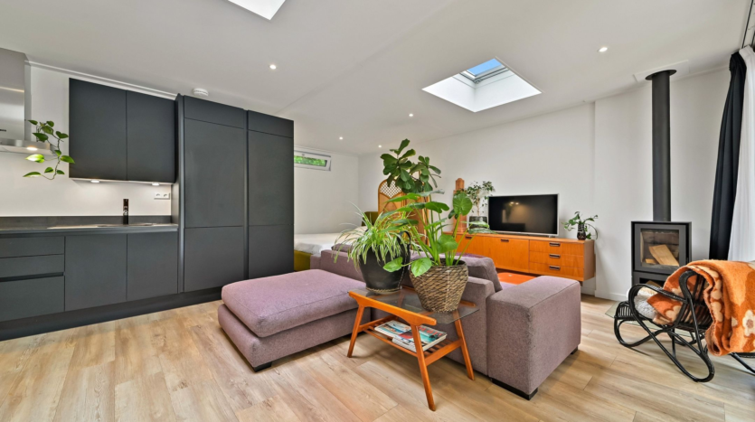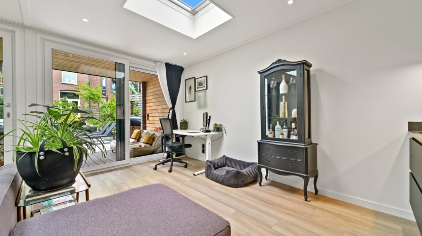 Located at ‘s-Gravendijkwal 38 B, in the vibrant Oude Westen district of Rotterdam, this stately double ground-floor residence offers five spacious rooms and a beautifully deep city garden stretching nearly 30 meters, complete with a freestanding guesthouse at the rear. Built in 2020, the guesthouse is fully equipped with its own kitchen and bathroom—perfect as a home office, creative studio, or a cozy evening retreat by the fireplace.